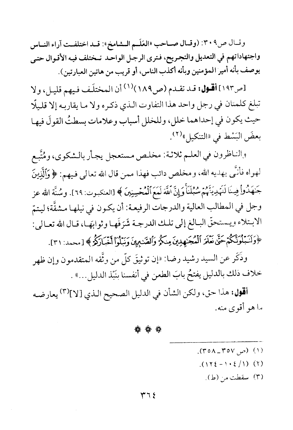 والناظرون في العلم ثلاثة: مخلص مستعجل يجأر بالشكوى، ومُتَّبع لهواه فأنَّى يهديه الله، ومخلص دائب فهذا ممن قال الله تعالى فيهم: {وَالَّذِينَ جَاهَدُوا فِينَا لَنَهْدِيَنَّهُمْ سُبُلَنَا وَإِنَّ اللَّهَ لَمَعَ الْمُحْسِنِينَ} [العنكبوت: ٦٩]. وسُنَّة الله عز وجل في المطالب العالية والدرجات الرفيعة: أن يكون في نيلها مشقَّة؛ ليتمّ الابتلاء ويستحقّ البالغ إلى تلك الدرجة شَرَفَها وثوابَها، قال الله تعالى: {وَلَنَبْلُوَنَّكُمْ حَتَّى نَعْلَمَ الْمُجَاهِدِينَ مِنْكُمْ وَالصَّابِرِينَ وَنَبْلُوَ أَخْبَارَكُمْ} [محمد: ٣١].