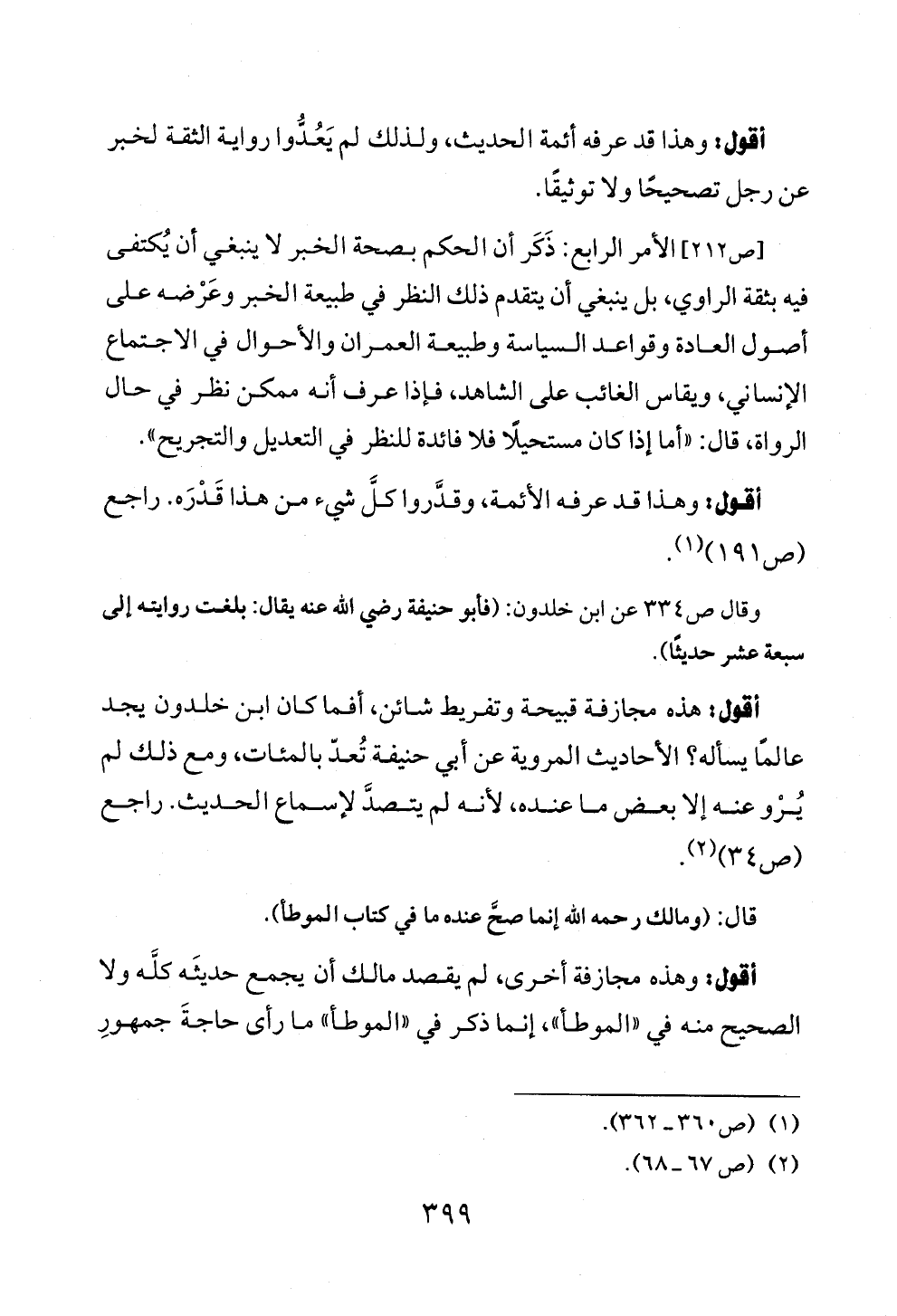 وقال ص ٣٣٤ عن ابن خلدون: (فأبو حنيفة رضي الله عنه يقال: بلغت روايته إلى سبعة عشر حديثًا).