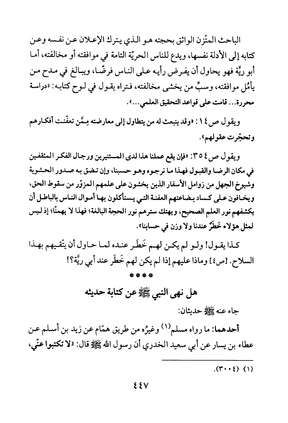 كذا يقول! ولو لم يكن لهم خَطَر عنده لما حاول أن يتّقيهم بهذا السلاح. [ص ٤] وماذا عليهم إذا لم يكن لهم خَطَر عند أبي ريَّة؟ !