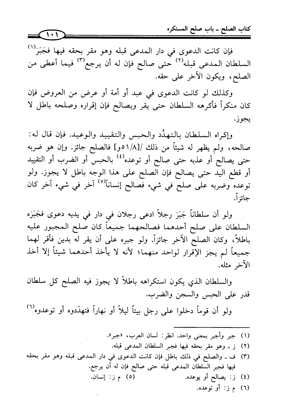 والسلطان الذي يكون استكراهه باطلاً لا يجوز فيه الصلح كل سلطان قدر على الحبس والسجن والضرب.