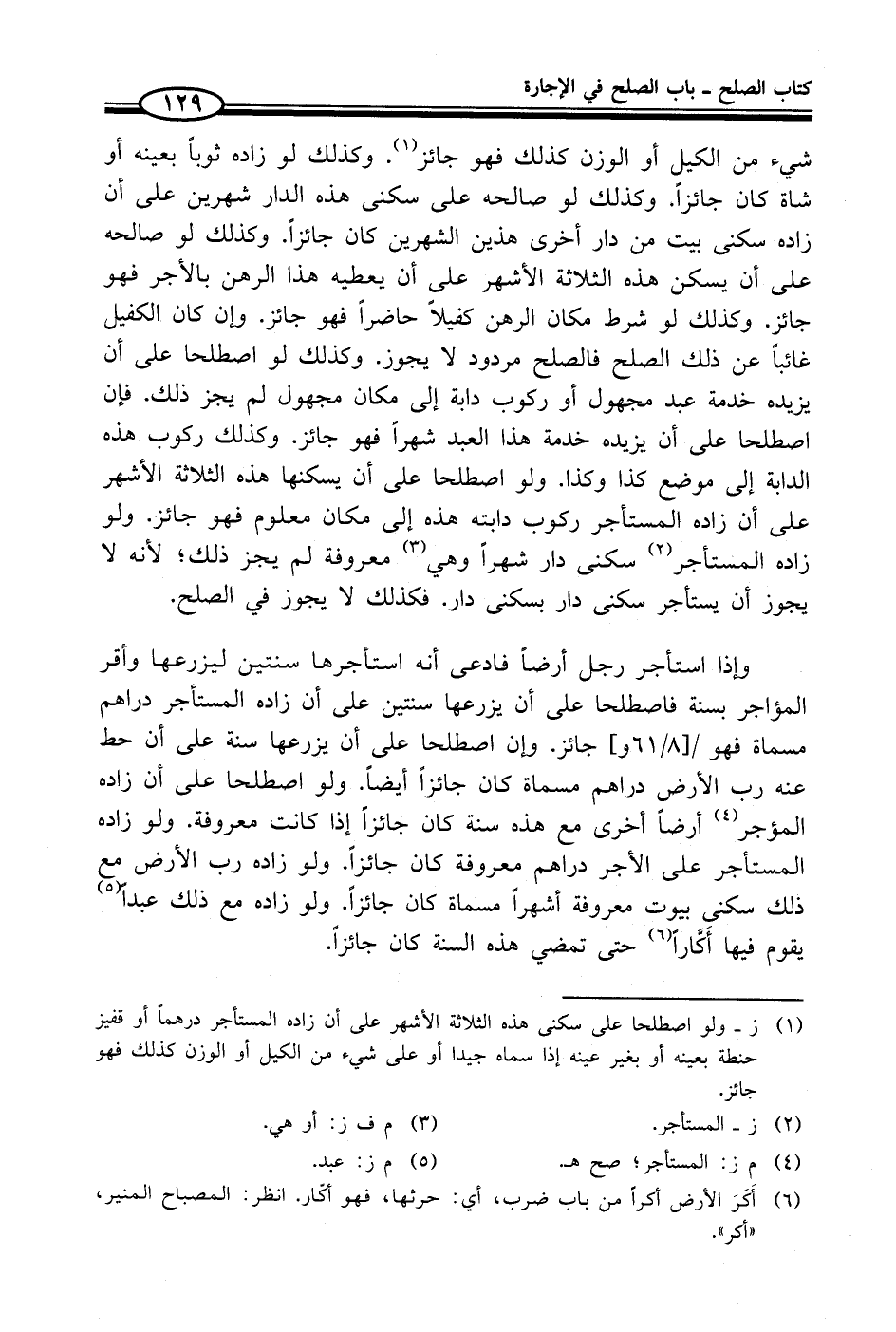 (¬1) ز - ولو اصطلحا على سكنى هذه الثلاثة الأشهر على أن زاده المستأجر درهماً أو قفيز حنطة بعينه أو بغير عينه إذا سماه جيدا أو على شيء من الكيل أو الوزن كذلك فهو جائز.