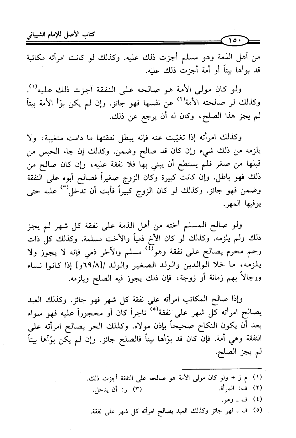 ولو صالح المسلم أخته من أهل الذمة على نفقة كل شهر لم يجز ذلك ولم يلزمه. وكذلك لو كان الأخ ذمياً والأخت مسلمة. وكذلك كل ذات رحم محرم يصالح على نفقة وهو (¬4) مسلم والآخر ذمي فإنه لا يجوز ولا يلزمه، ما خلا الوالدين والولد الصغير والولد إذا كانوا نساء ورجالاً بهم زمانة أو زوجة، فإن ذلك يجوز فيه الصلح ويلزمه.