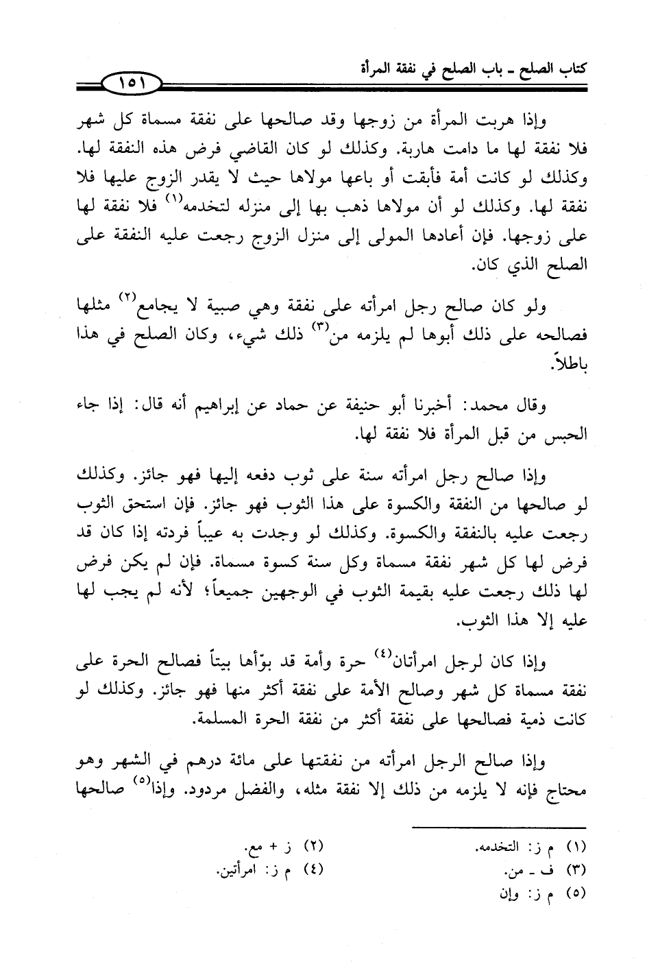 وإذا كان لرجل امرأتان (¬4) حرة وأمة قد بوّأها بيتاً فصالح الحرة على نفقة مسماة كل شهر وصالح الأمة على نفقة أكثر منها فهو جائز. وكذلك لو كانت ذمية فصالحها على نفقة أكثر من نفقة الحرة المسلمة.
