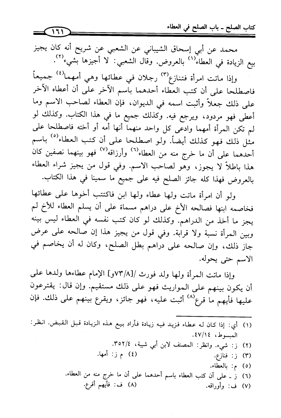 (¬6) ز - على أن كتب العطاء باسم أحدهما على أن ما خرج منه من العطاء.
