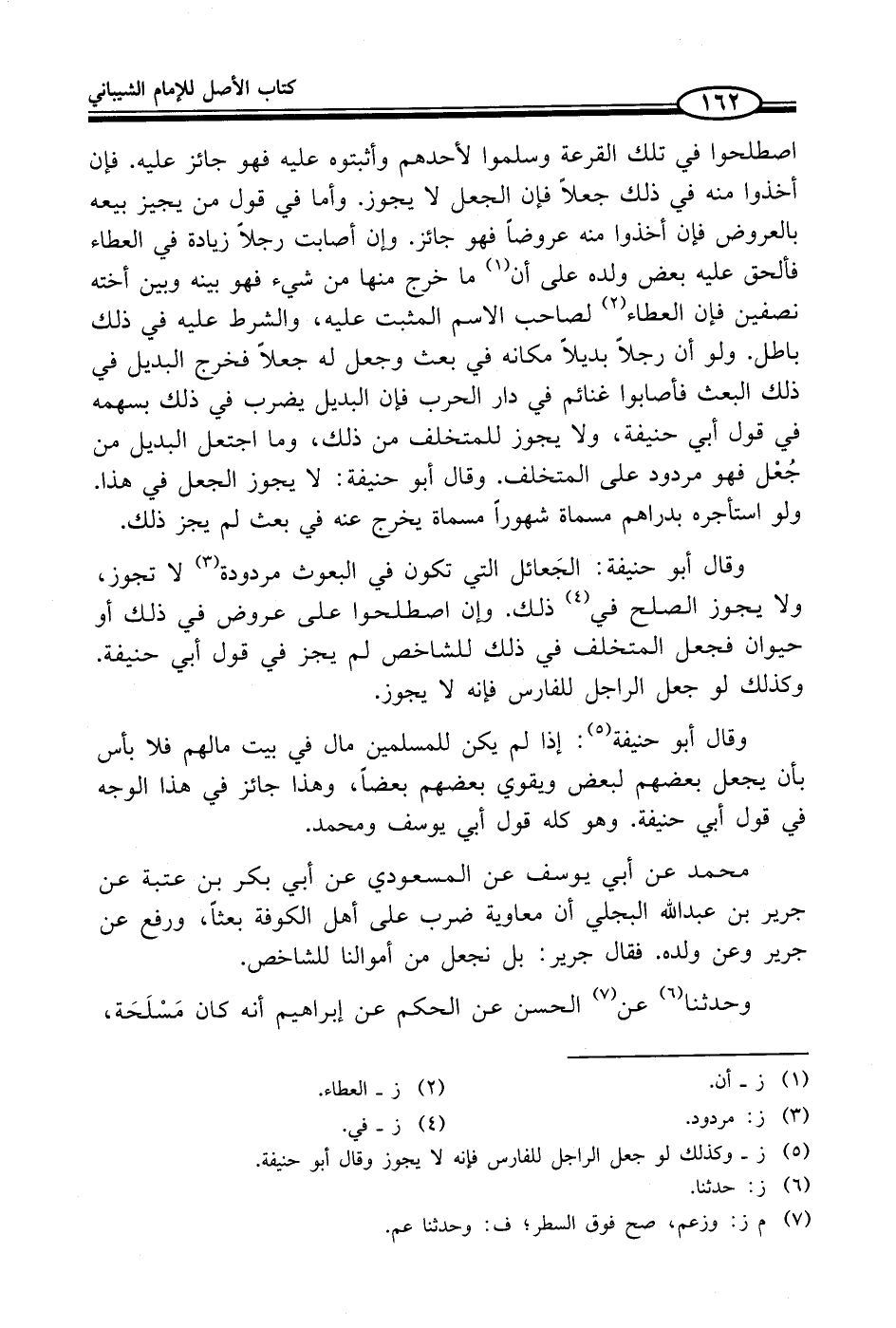 محمد عن أبي يوسف عن المسعودي عن أبي بكر بن عتبة عن جرير بن عبد الله البجلي أن معاوية ضرب على أهل الكوفة بعثاً، ورفع عن جرير وعن ولده. فقال جرير: بل نجعل من أموالنا للشاخص.