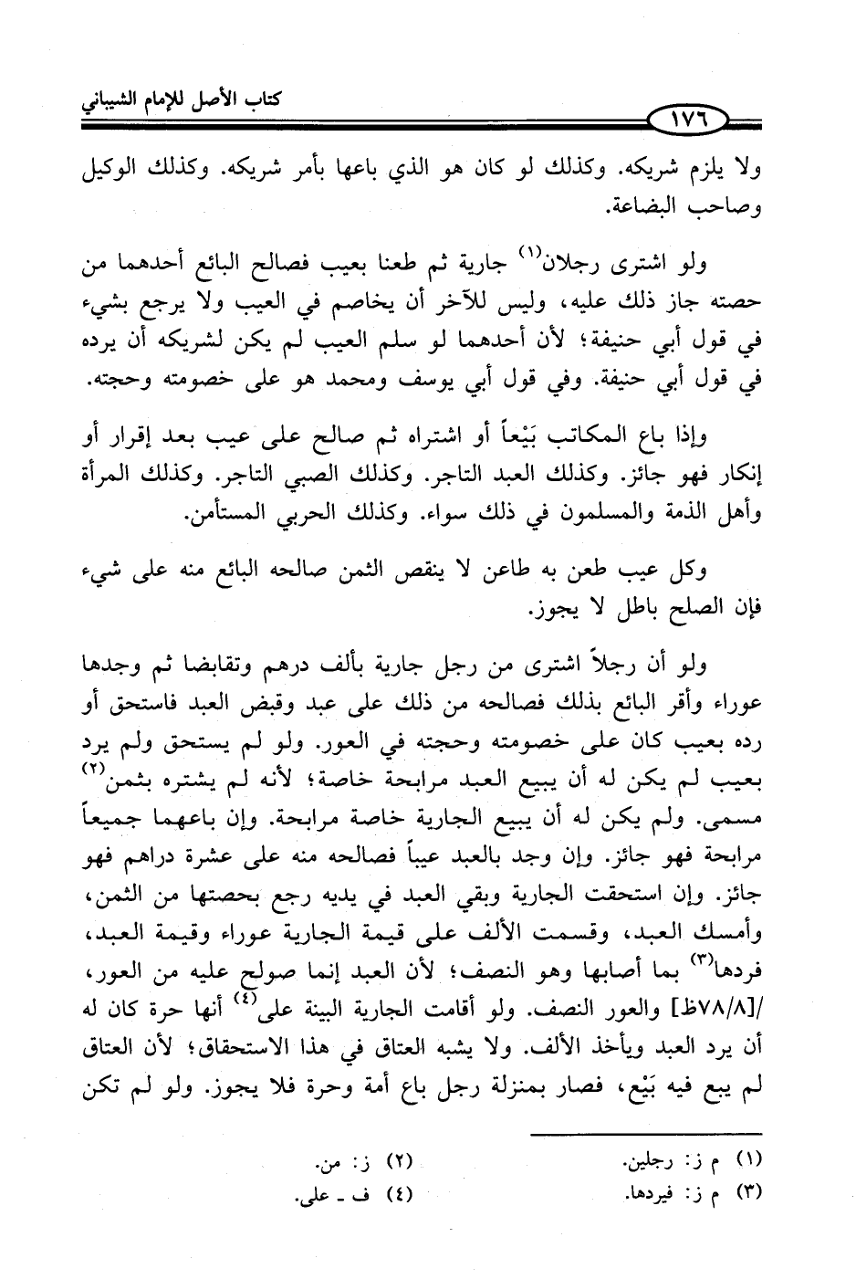 وإذا باع المكاتب بَيْعاً أو اشتراه ثم صالح على عيب بعد إقرار أو إنكار فهو جائز. وكذلك العبد التاجر. وكذلك الصبي التاجر. وكذلك المرأة وأهل الذمة والمسلمون في ذلك سواء. وكذلك الحربي المستأمن.
