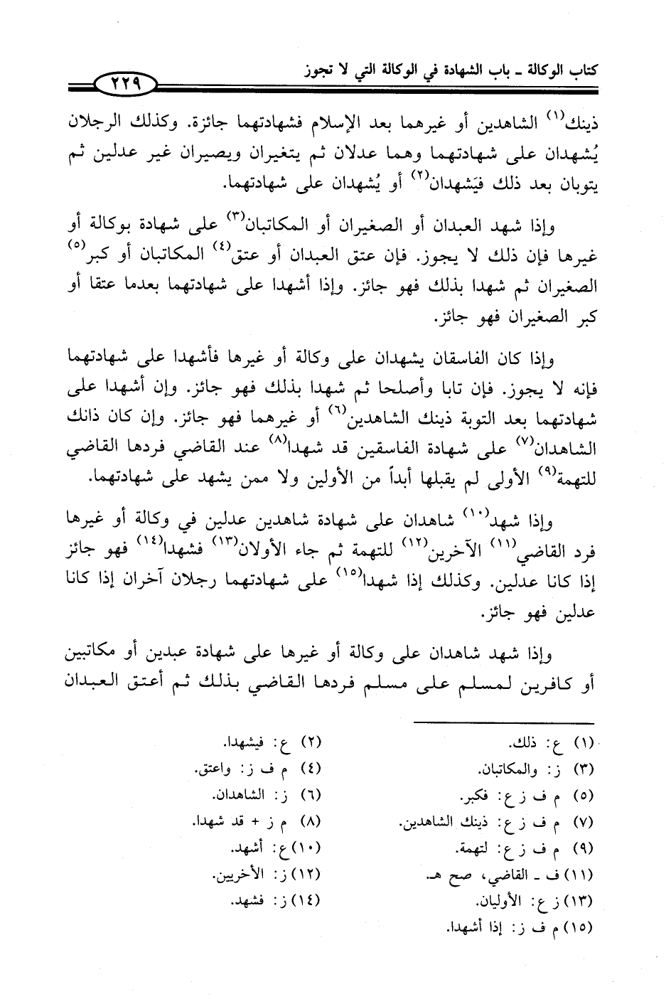 وإذا شهد العبدان أو الصغيران أو المكاتبان (¬3) على شهادة بوكالة أو غيرها فإن ذلك لا يجوز. فإن عتق العبدان أو عتق (¬4) المكاتبان أو كبر (¬5) الصغيران ثم شهدا بذلك فهو جائز. وإذا أشهدا على شهادتهما بعدما عتقا أو كبر الصغيران فهو جائز.
