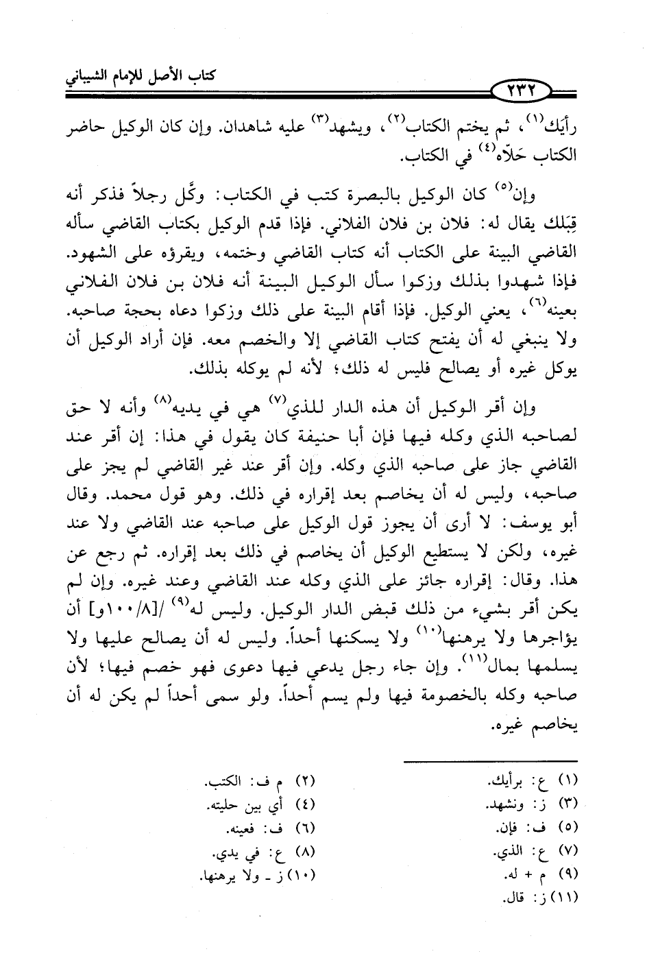 رأيَك (¬1)، ثم يختم الكتاب (¬2)، ويشهد (¬3) عليه شاهدان. وإن كان الوكيل حاضر الكتاب حَلّاه (¬4) في الكتاب.