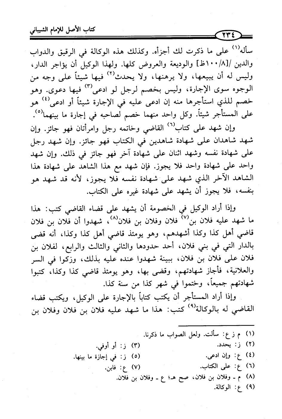 سأله (¬1) على ما ذكرت لك أجزأه. وكذلك هذه الوكالة في الرقيق والدواب والدين والوديعة والعروض كلها. ولهذا الوكيل أن يؤاجر الدار، وليس له أن يبيعها، ولا يرهنها، ولا يحدث (¬2) فيها شيئاً على وجه من الوجوه سوى الإجارة، وليس بخصم لرجل لو ادعى (¬3) فيها دعوى. وهو خصم للذي استأجرها منه إن ادعى عليه في الإجارة شيئاً أو ادعى (¬4) هو على المستأجر شيئاً. وكل واحد منهما خصم لصاحبه في إجارة ما بينهما (¬5).