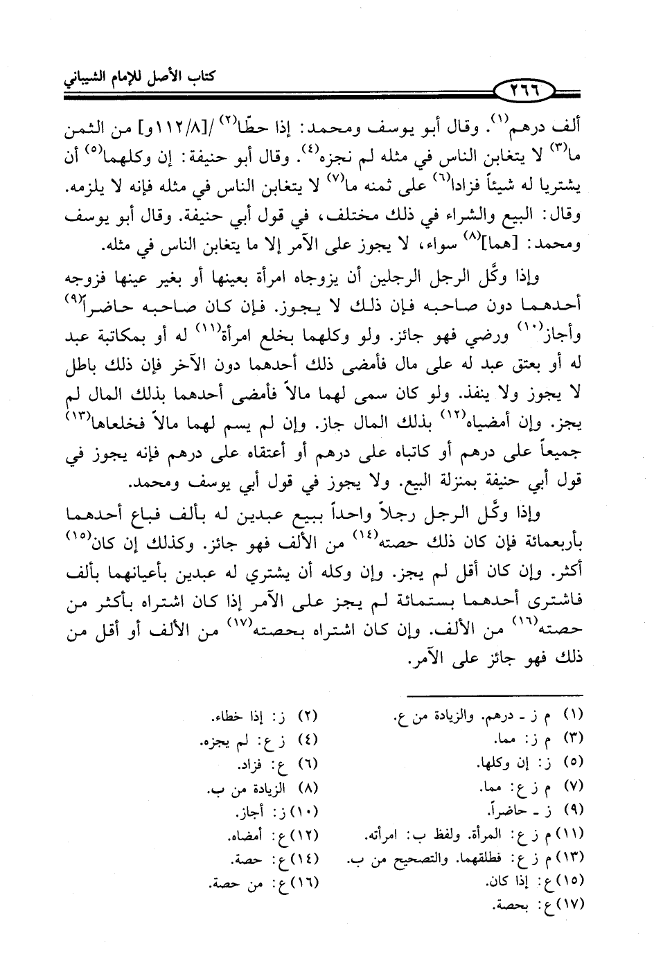ألف درهم (¬1). وقال أبو يوسف ومحمد: إذا حطّا (¬2) من الثمن ما (¬3) لا يتغابن الناس في مثله لم نجزه (¬4). وقال أبو حنيفة: إن وكلهما (¬5) أن يشتريا له شيئاً فزادا (¬6) على ثمنه ما (¬7) لا يتغابن الناس في مثله فإنه لا يلزمه. وقال: البيع والشراء في ذلك مختلف، في قول أبي حنيفة. وقال أبو يوسف ومحمد: [هما] (¬8) سواء، لا يجوز على الآمر إلا ما يتغابن الناس في مثله. وإذا وكَّل الرجل الرجلين أن يزوجاه امرأة بعينها أو بغير عينها فزوجه أحدهما دون صاحبه فإن ذلك لا يجوز. فإن كان صاحبه حاضراً (¬9) وأجاز (¬10) ورضي فهو جائز. ولو وكلهما بخلع امرأة (¬11) له أو بمكاتبة عبد له أو بعتق عبد له على مال فأمضى ذلك أحدهما دون الآخر فإن ذلك باطل لا يجوز ولا ينفذ. ولو كان سمى لهما مالاً فأمضى أحدهما بذلك المال لم يجز. وإن أمضياه (¬12) بذلك المال جاز. وإن لم يسم لهما مالاً فخلعاها (¬13) جميعاً على درهم أو كاتباه على درهم أو أعتقاه على درهم فإنه يجوز في قول أبي حنيفة بمنزلة البيع. ولا يجوز في قول أبي يوسف ومحمد.