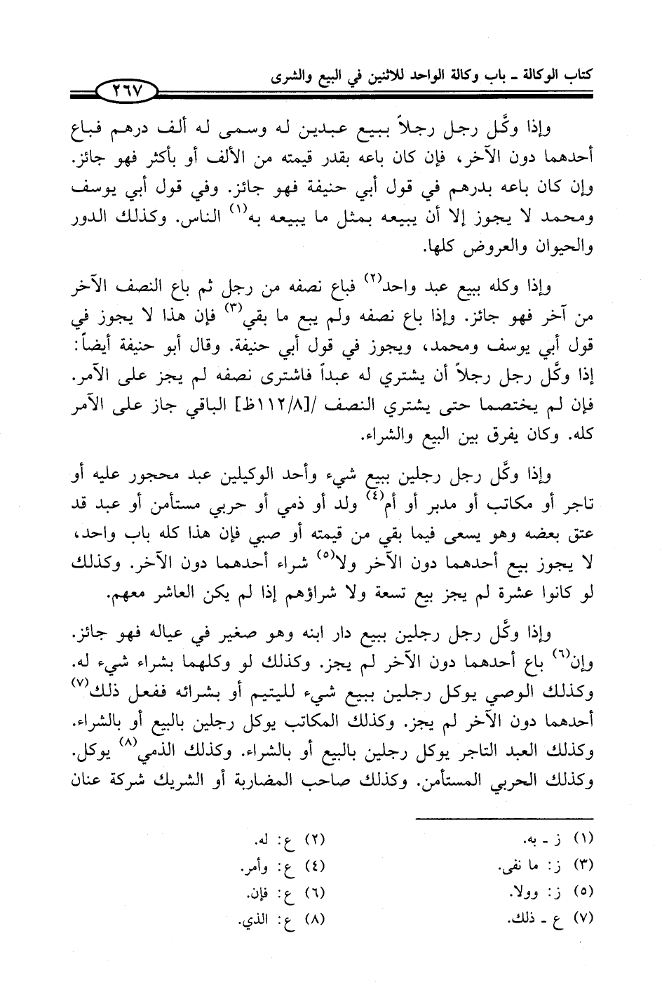 فإذا وكَّل رجل رجلين ببيع دار ابنه وهو صغير في عياله فهو جائز. وإن (¬6) باع أحدهما دون الآخر لم يجز. وكذلك لو وكلهما بشراء شيء له. وكذلك الوصي يوكل رجلين ببيع شيء لليتيم أو بشرائه ففعل ذلك (¬7) أحدهما دون الآخر لم يجز. وكذلك المكاتب يوكل رجلين بالبيع أو بالشراء. وكذلك العبد التاجر يوكل رجلين بالبيع أو بالشراء. وكذلك الذمي (¬8) يوكل. وكذلك الحربي المستأمن. وكذلك صاحب المضاربة أو الشريك شركة عنان