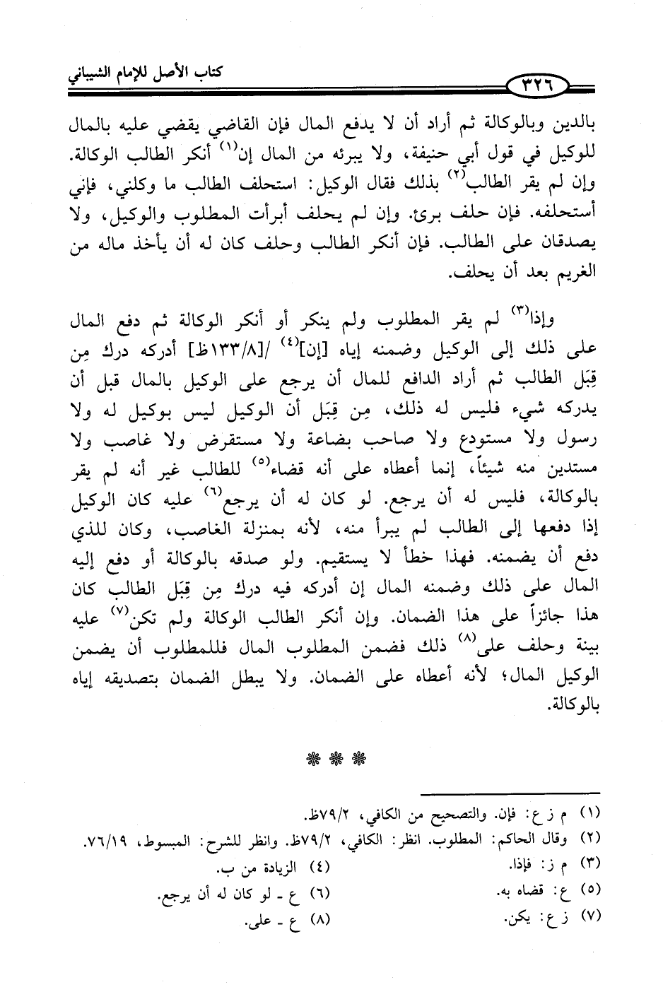 (¬2) وقال الحاكم: المطلوب. انظر: الكافي، 2/ 79 ظ. وانظر للشرح: المبسوط، 19/ 76.