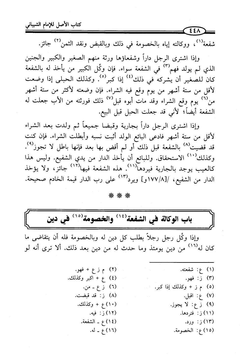 باب الوكالة في الشفعة (¬14) والخصومة (¬15) في دين
