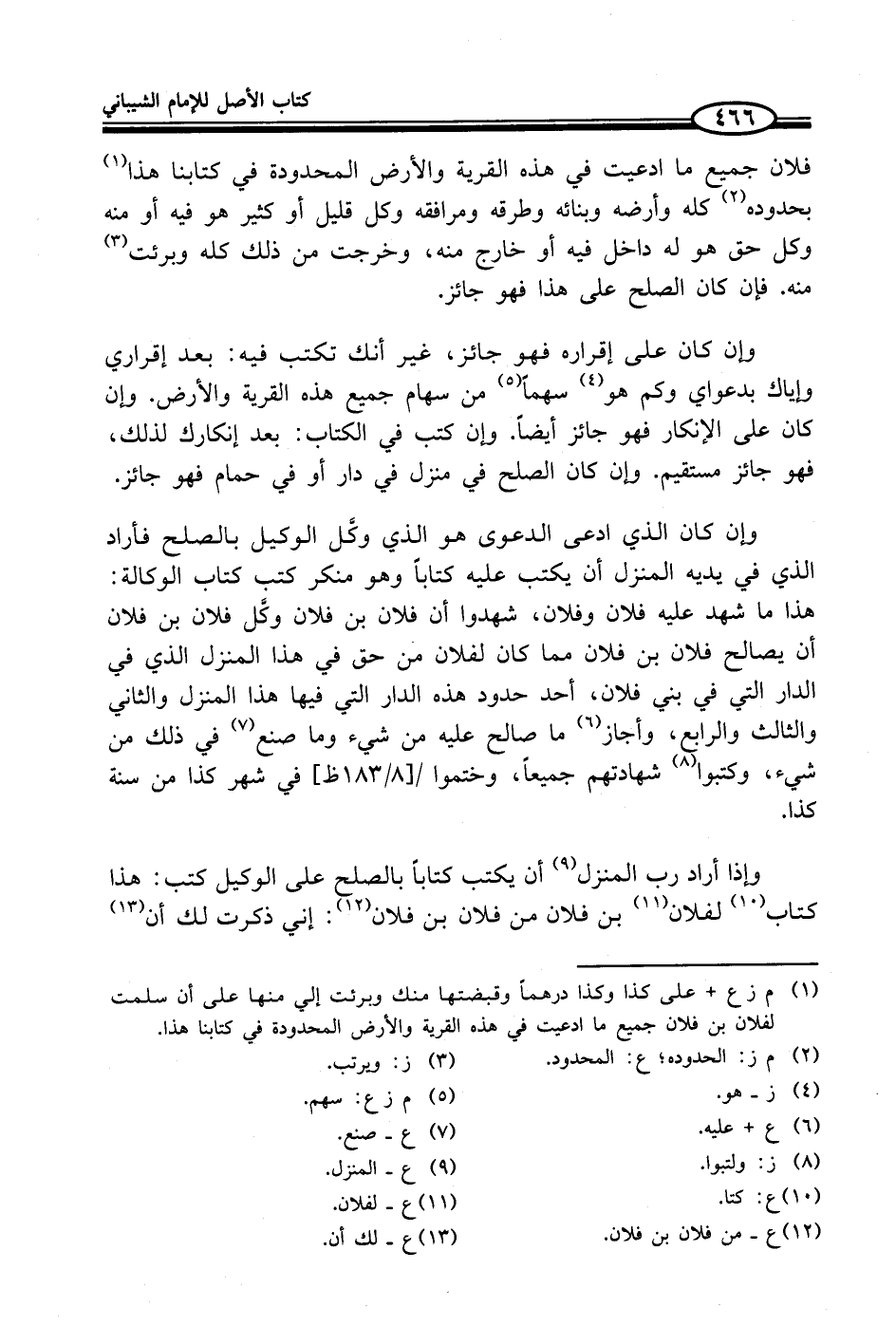 (¬1) م ز ع + على كذا وكذا درهماً وقبضتها منك وبرئت إلي منها على أن سلمت لفلان بن فلان جميع ما ادعيت في هذه القرية والأرض المحدودة في كتابنا هذا.