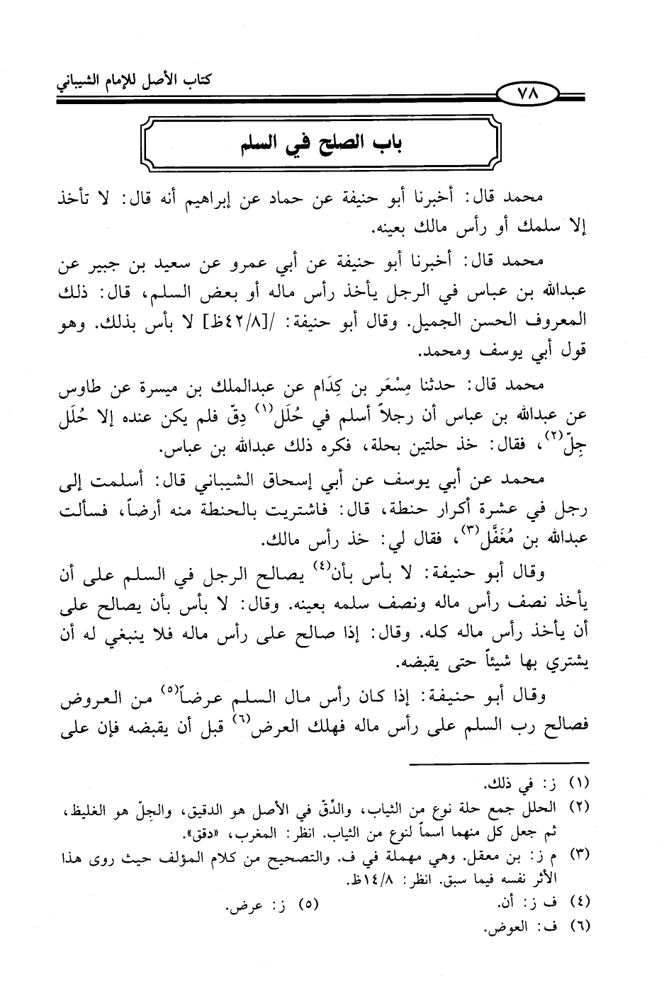محمد قال: أخبرنا أبو حنيفة عن حماد عن إبراهيم أنه قال: لا تأخذ إلا سلمك أو رأس مالك بعينه.
