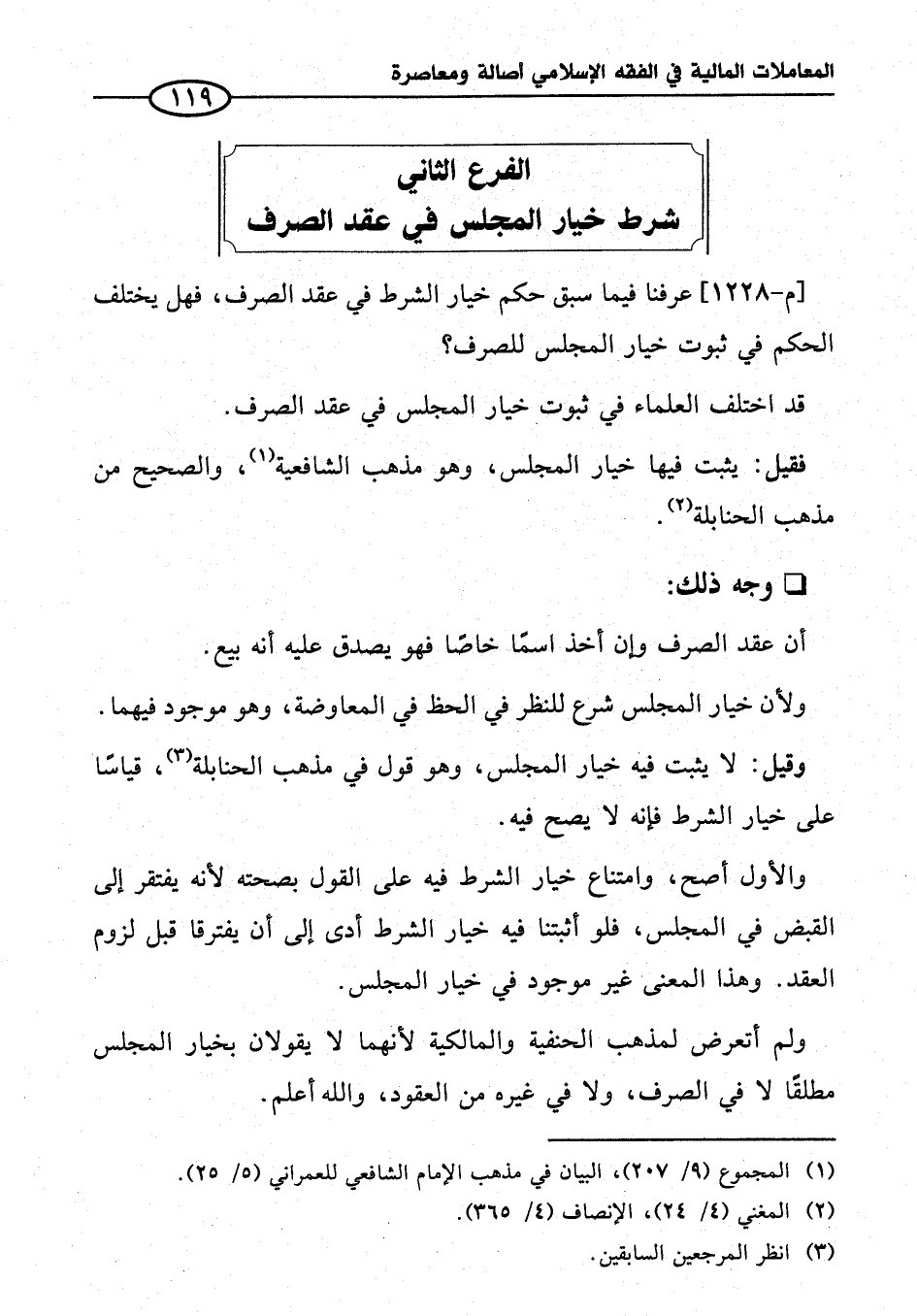 الفرع الثاني شرط خيار المجلس في عقد الصرف