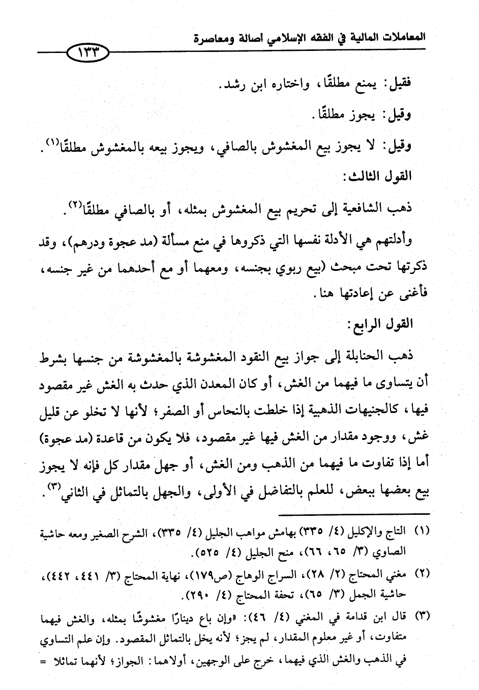 (¬٣) قال ابن قدامة في المغني (٤/ ٤٦): "وإن باع ديناراً مغشوشًا بمثله، والغش فيهما متفاوت، أو غير معلوم المقدار، لم يجز؛ لأنه يخل بالتماثل المقصود. وإن علم التساوي في الذهب والغش الذي فيهما، خرج على الوجهين، أولاهما: الجواز؛ لأنهما تماثلا=