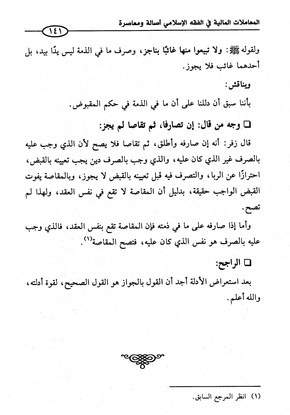 بأننا سبق أن دللنا على أن ما في الذمة في حكم المقبوض.