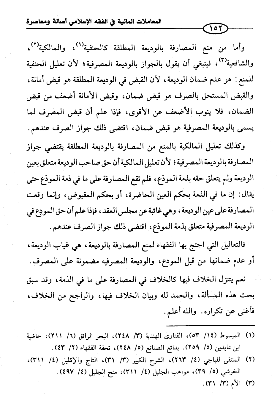 وكذلك تعليل المالكية بالمنع من المصارفة بالوديعة المطلقة يقتضي جواز المصارفة بالوديعة المصرفية؛ لأن تعليل المالكية أن حق صاحب الوديعة متعلق بعين الوديعة ولم يتعلق حقه بذمة المودَع، فلم تقع المصارفة على ما في ذمة المودَع حتى يقال: إن ما في الذمة بحكم العين الحاضرة، أو بحكم المقبوض، وإنما وقعت المصارفة على عين الوديعة، وهي غائبة عن مجلس العقد، فإذا علم أن حق المودِع في الوديعة المصرفية متعلق بذمة المودَع، اقتضى ذلك جواز الصرف عندهم.
