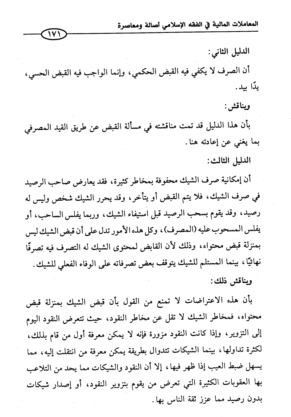 بأن هذا الدليل قد تمت مناقشته في مسألة القبض عن طريق القيد المصرفي بما يغني عن إعادته هنا.