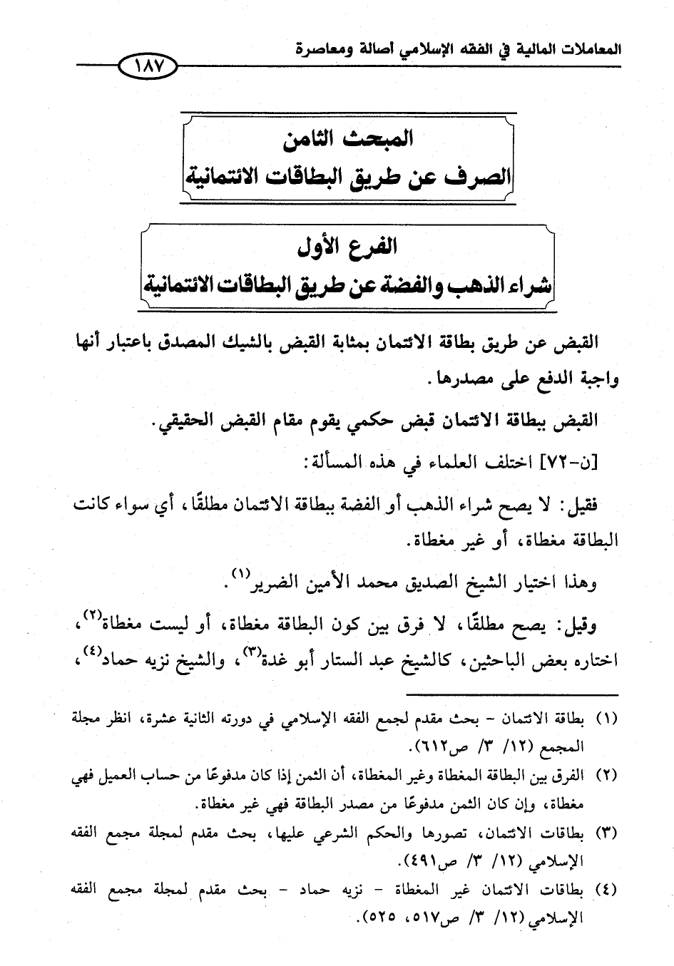 (¬١) بطاقة الائتمان - بحث مقدم لجمع الفقه الإِسلامي في دورته الثانية عشرة، انظر مجلة المجمع (٣/ ١٢/ ص ٦١٢).