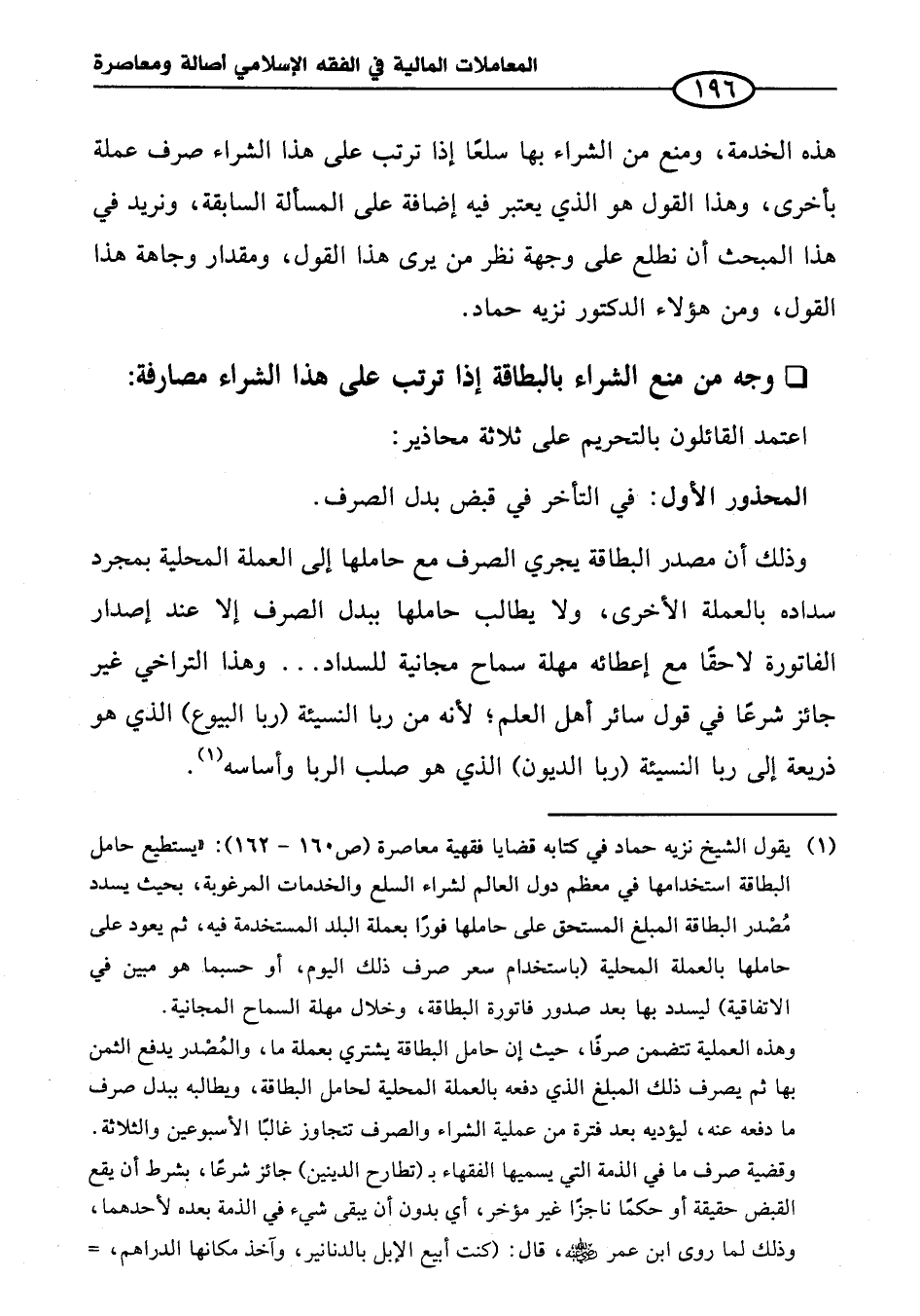 هذه الخدمة، ومنع من الشراء بها سلعًا إذا ترتب على هذا الشراء صرف عملة بأخرى، وهذا القول هو الذي يعتبر فيه إضافة على المسألة السابقة، ونريد في هذا المبحث أن نطلع على وجهة نظر من يرى هذا القول، ومقدار وجاهة هذا القول، ومن هؤلاء الدكتور نزيه حماد.