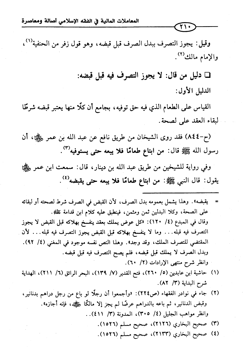 (ح - ٨٤٤) فقد روى الشيخان من طريق نافع عن عبد الله بن عمر - رضي الله عنه -، أن رسول الله - صلى الله عليه وسلم - قال: من ابتاع طعامًا فلا يبعه حتى يستوفيه (¬٣).