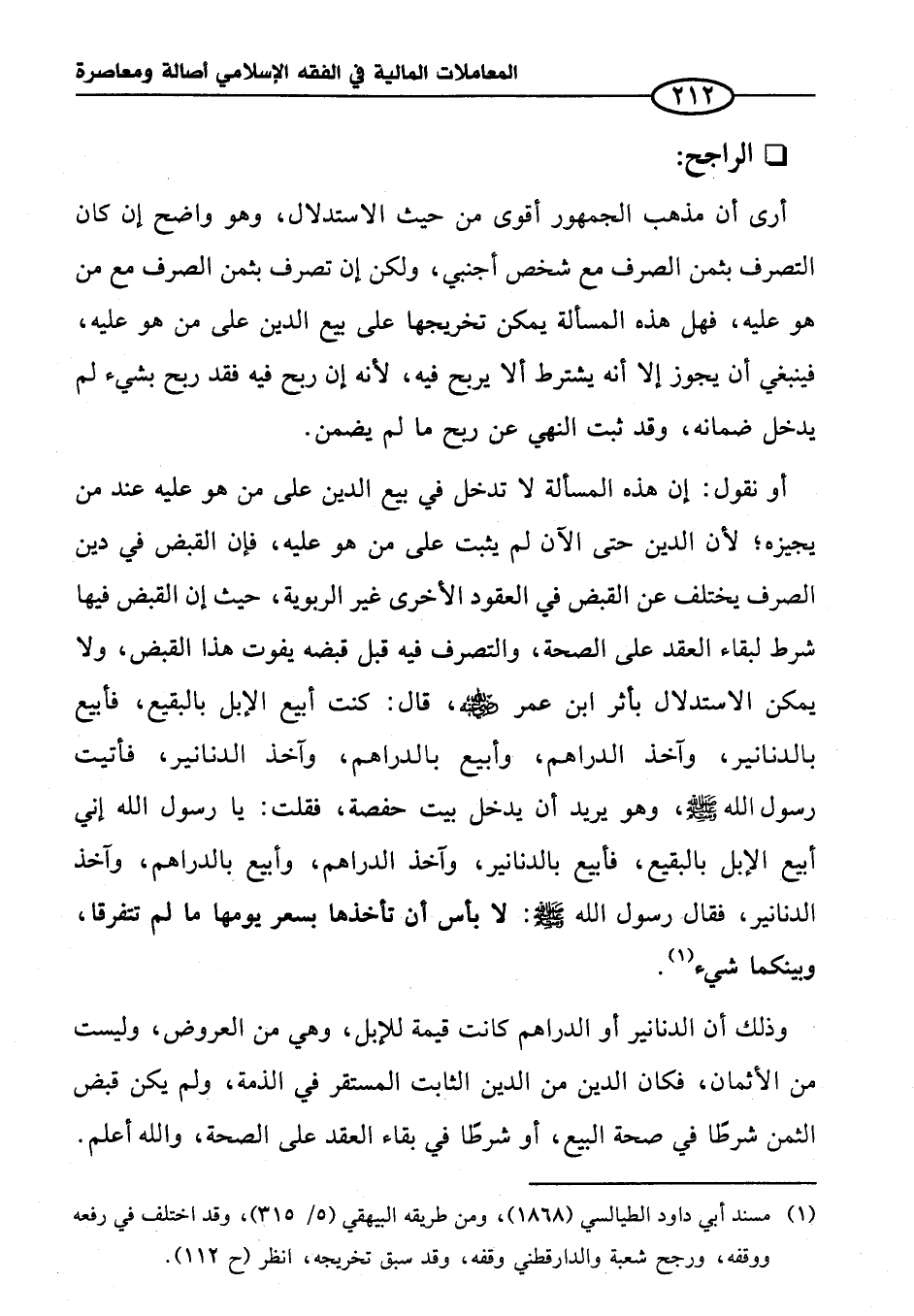 أرى أن مذهب الجمهور أقوى من حيث الاستدلال، وهو واضح إن كان التصرف بثمن الصرف مع شخص أجنبي، ولكن إن تصرف بثمن الصرف مع من هو عليه، فهل هذه المسألة يمكن تخريجها على بيع الدين على من هو عليه، فينبغي أن يجوز إلا أنه يشترط ألا يربح فيه؛ لأنه إن ربح فيه فقد ربح بشيء لم يدخل ضمانه، وقد ثبت النهي عن ربح ما لم يضمن.