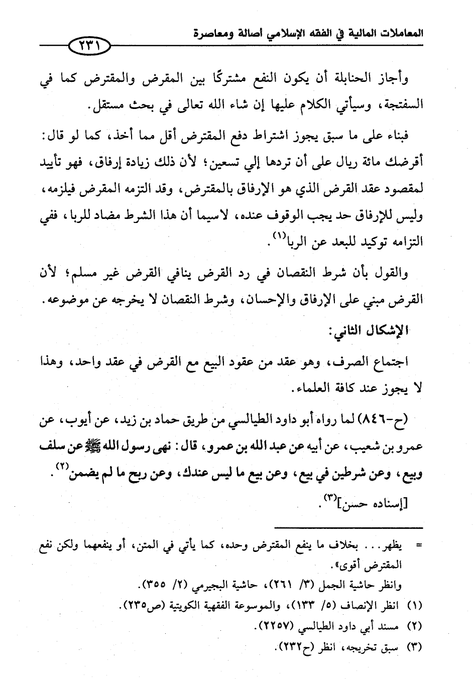 (ح - ٨٤٦) لما رواه أبو داود الطيالسي من طريق حماد بن زيد، عن أيوب، عن عمرو بن شعيب، عن أبيه عن عبد الله بن عمرو، قال: نهى رسول الله - صلى الله عليه وسلم - عن سلف وبيع، وعن شرطين في بيع، وعن بيع ما ليس عندك، وعن ربح ما لم يضمن (¬٢).