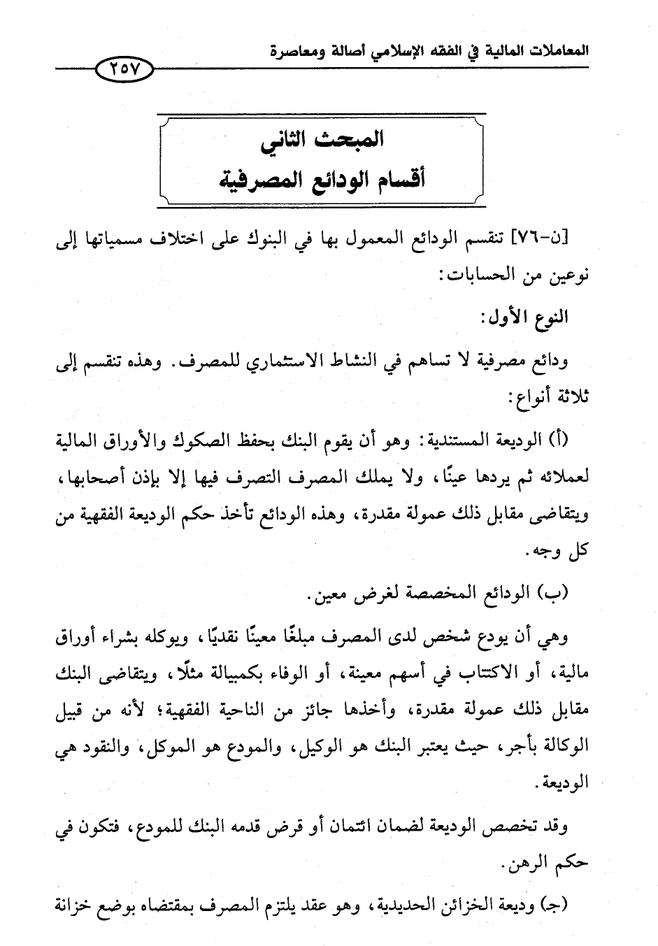 [ن - ٧٦] تنقسم الودائع المعمول بها في البنوك على اختلاف مسمياتها إلى نوعين من الحسابات: