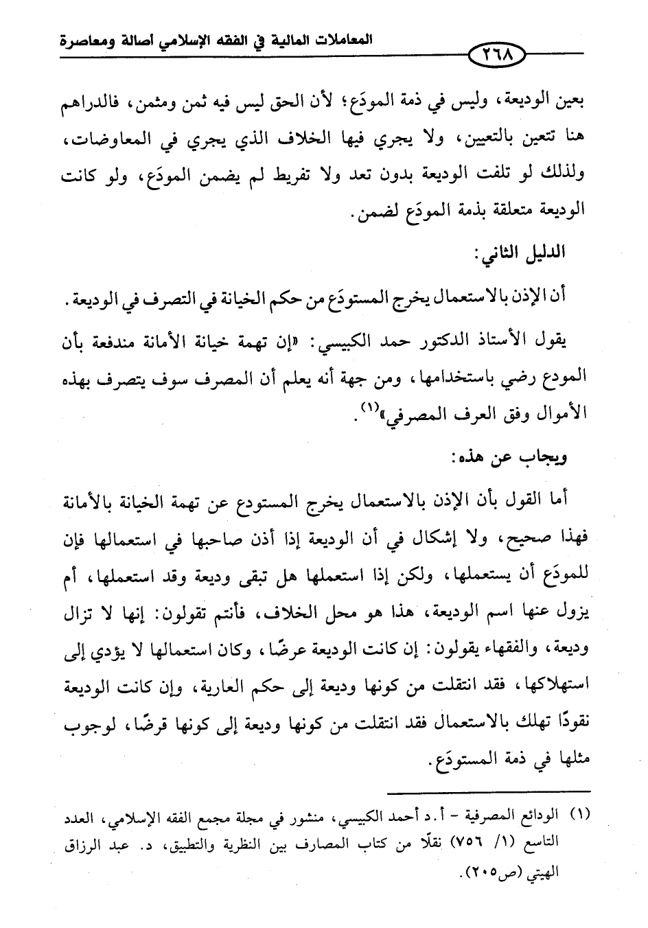 (¬١) الودائع المصرفية - أ. د. أحمد الكبيسي، منشور في مجلة مجمع الفقه الإِسلامي، العدد التاسع (١/ ٧٥٦) نقلًا من كتاب المصارف بين النظرية والتطبيق، د. عبد الرزاق الهيتي (ص ٢٠٥).