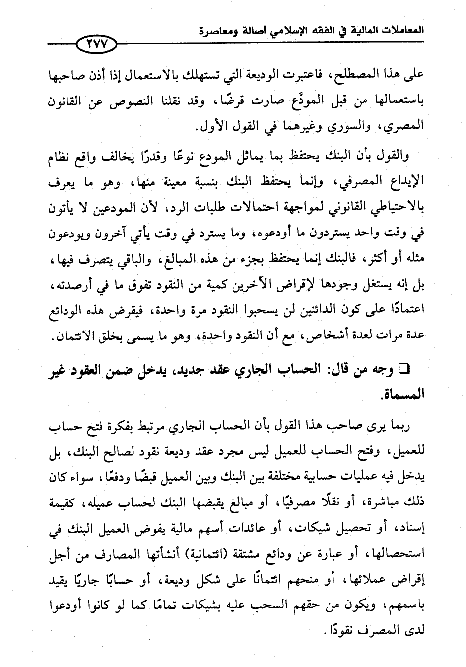 والقول بأن البنك يحتفظ بما يماثل المودع نوعًا وقدرًا يخالف واقع نظام الإيداع المصرفي، وإنما يحتفظ البنك بنسبة معينة منها، وهو ما يعرف بالاحتياطي القانوني لمواجهة احتمالات طلبات الرد؛ لأن المودعين لا يأتون في وقت واحد يستردون ما أودعوه، وما يسترد في وقت يأتي آخرون ويودعون مثله أو أكثر، فالبنك إنما يحتفظ بجزء من هذه المبالغ، والباقي يتصرف فيها، بل إنه يستغل وجودها لإقراض الآخرين كمية من النقود تفوق ما في أرصدته، اعتمادًا على كون الدائنين لن يسحبوا النقود مرة واحدة، فيقرض هذه الودائع عدة مرات لعدة أشخاص، مع أن النقود واحدة، وهو ما يسمى بخلق الائتمان.