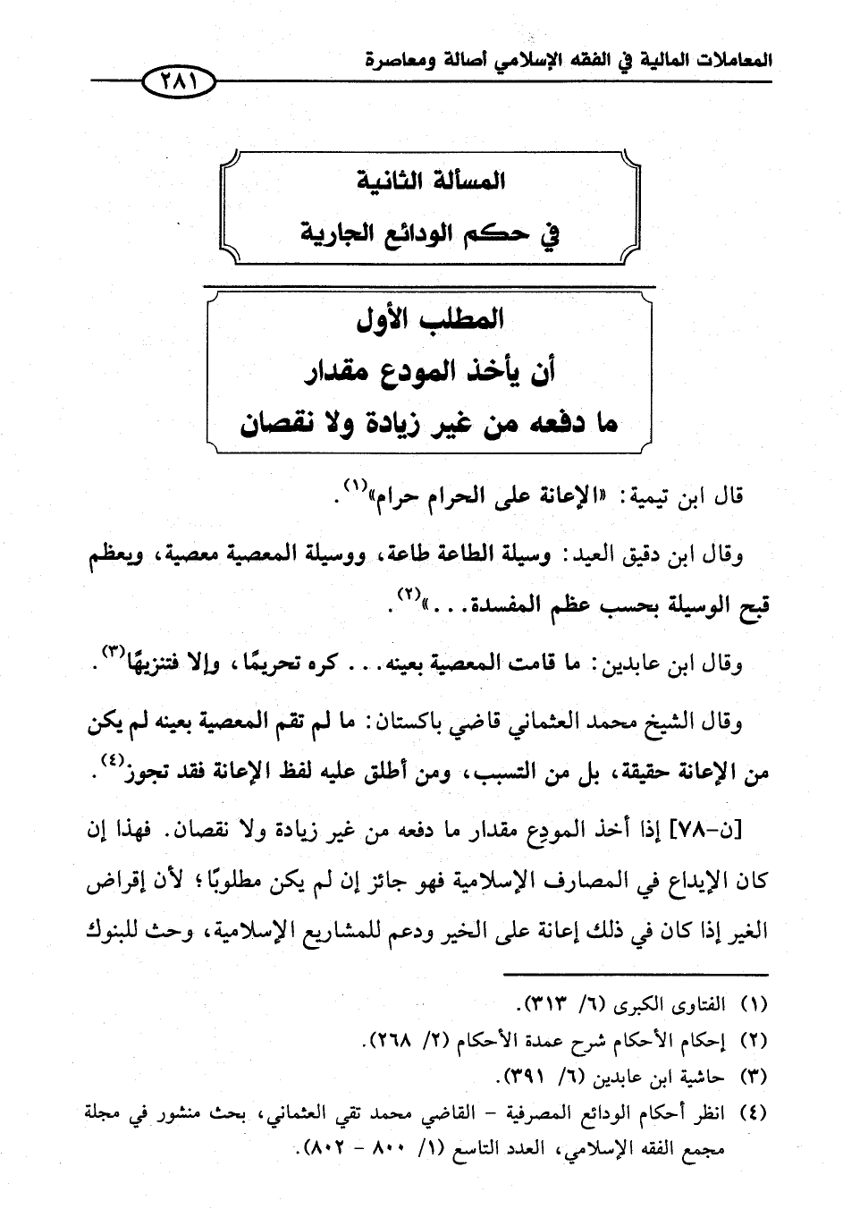 (¬٤) انظر أحكام الودائع المصرفية - القاضي محمد تقي العثماني، بحث منشور في مجلة مجمع الفقه الإسلامي، العدد التاسع (١/ ٨٠٠ - ٨٠٢).
