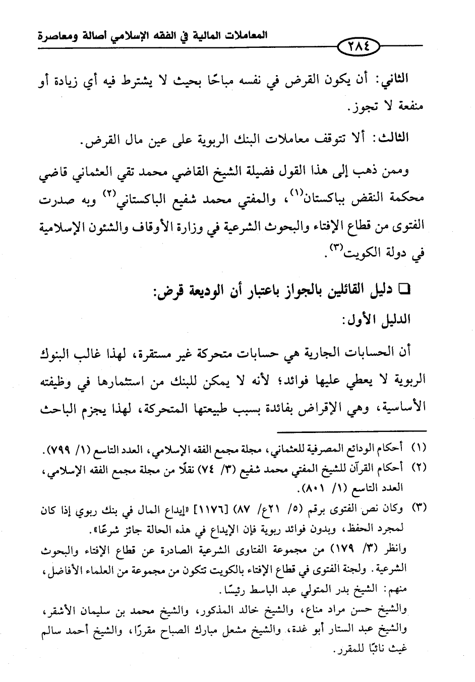 (¬١) أحكام الودائع المصرفية للعثماني، مجلة مجمع الفقه الإسلامي، العدد التاسع (١/ ٧٩٩).