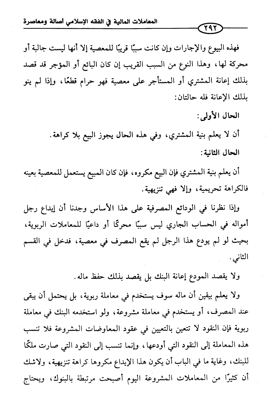 وإذا نظرنا في الودائع المصرفية على هذا الأساس وجدنا أن إيداع رجل أمواله في الحساب البخاري ليس سببًا محركًا أو داعيًا للمعاملات الربوية، بحيث لو لم يودع هذا الرجل لم يقع المصرف في معصية، فدخل في القسم الثاني.