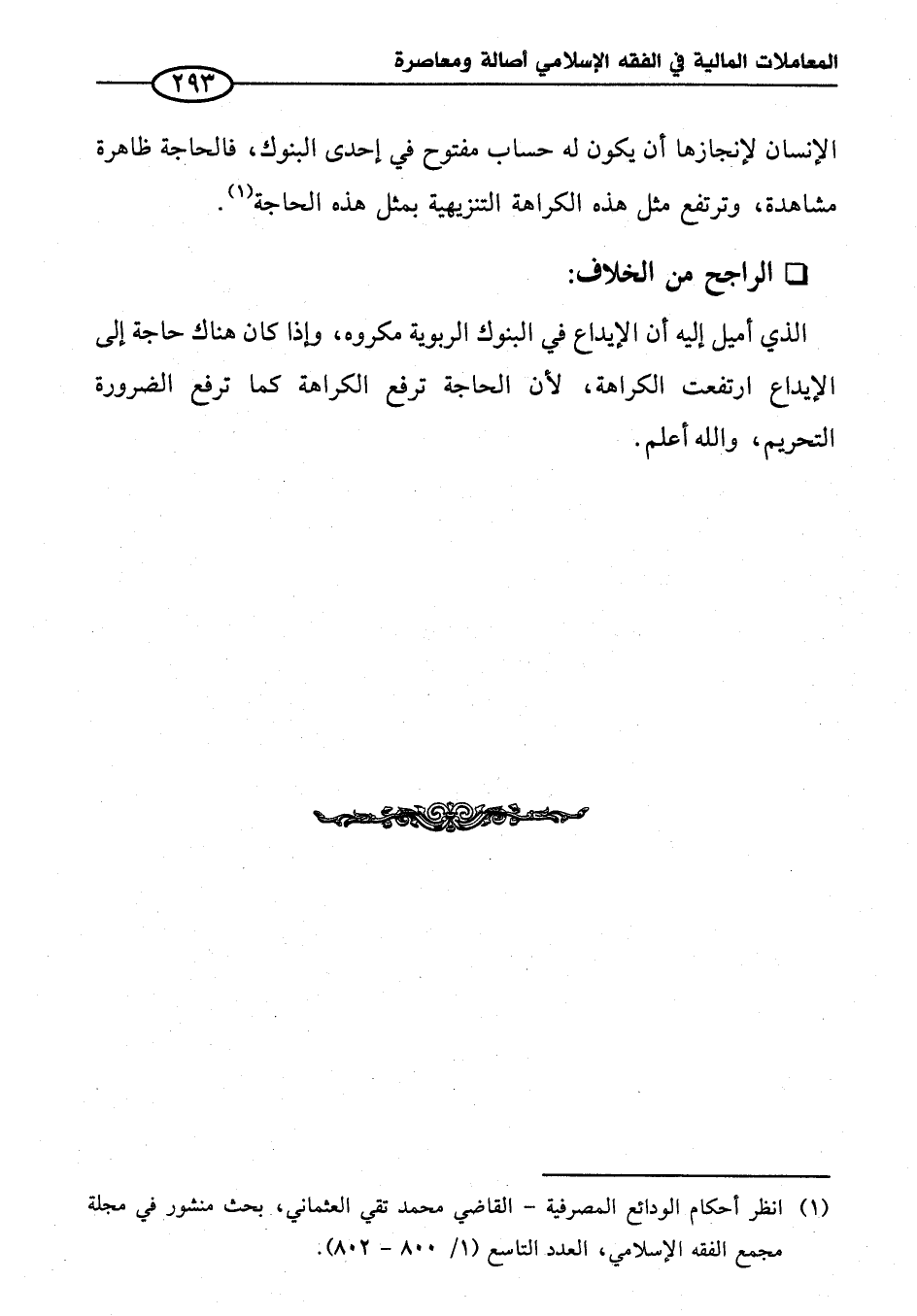 (¬١) انظر أحكام الودائع المصرفية - القاضي محمد تقي العثماني، بحث منشور في مجلة مجمع الفقه الإِسلامي، العدد التاسع (١/ ٨٠٠ - ٨٠٢).