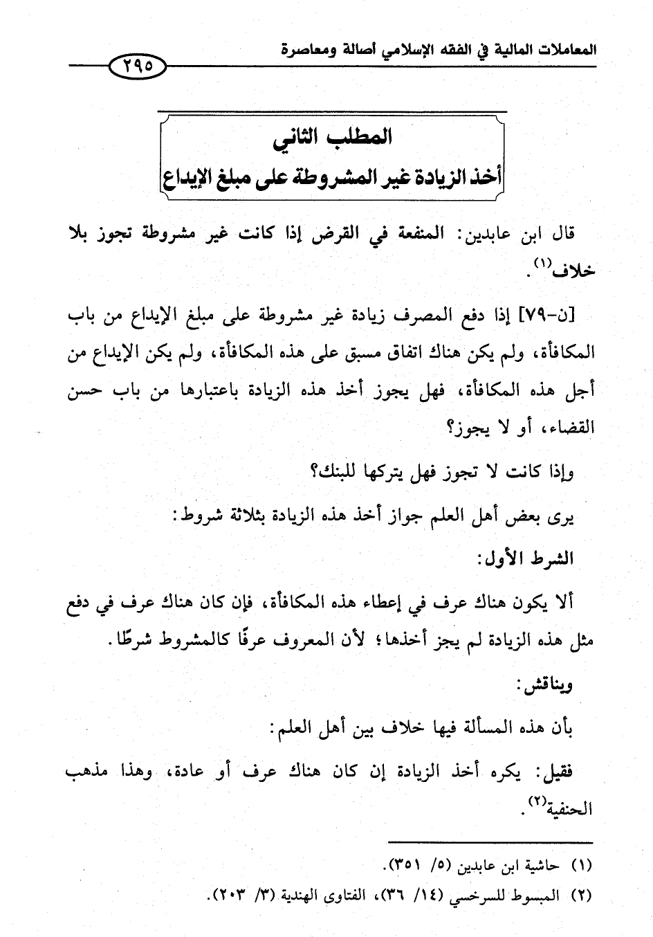 المطلب الثاني أخذ الزيادة غير المشروطة على مبلغ الإيداع