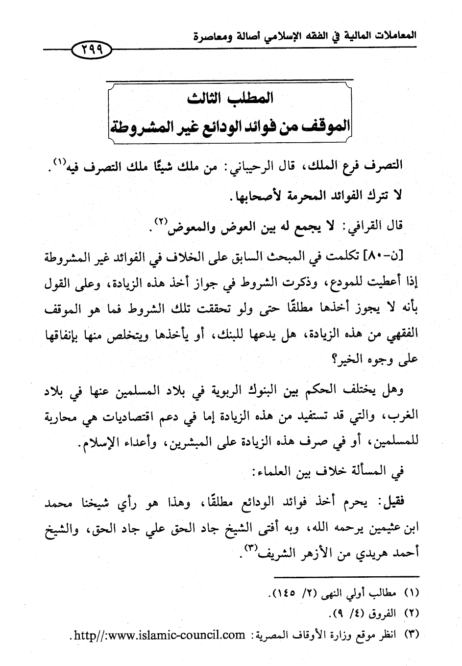 المطلب الثالث الموقف من فوائد الودائع غير المشروطة