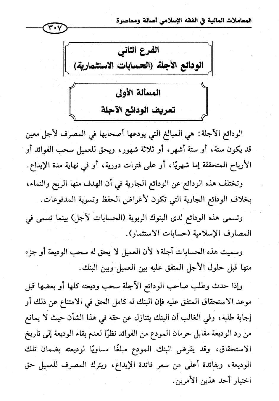 المسألة الأولى تعريف الودائع الآجلة