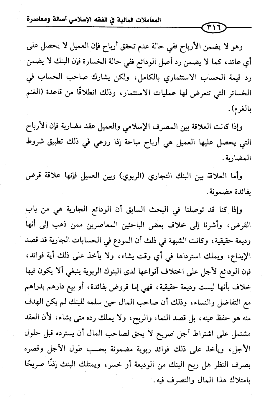 وأما العلاقة بين البنك التجاري (الربوي) وبين العميل فإنها علاقة قرض بفائدة مضمونة.