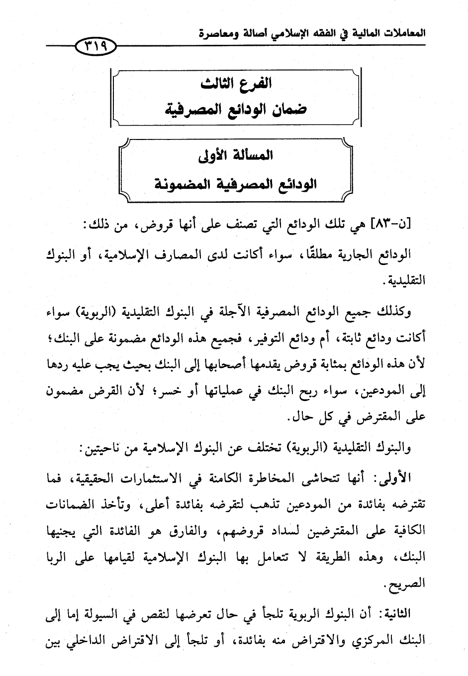 المسألة الأولى الودائع المصرفية المضمونة