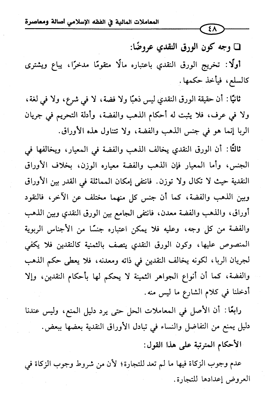 - وجه كون الورق النقدي عروضًا:
