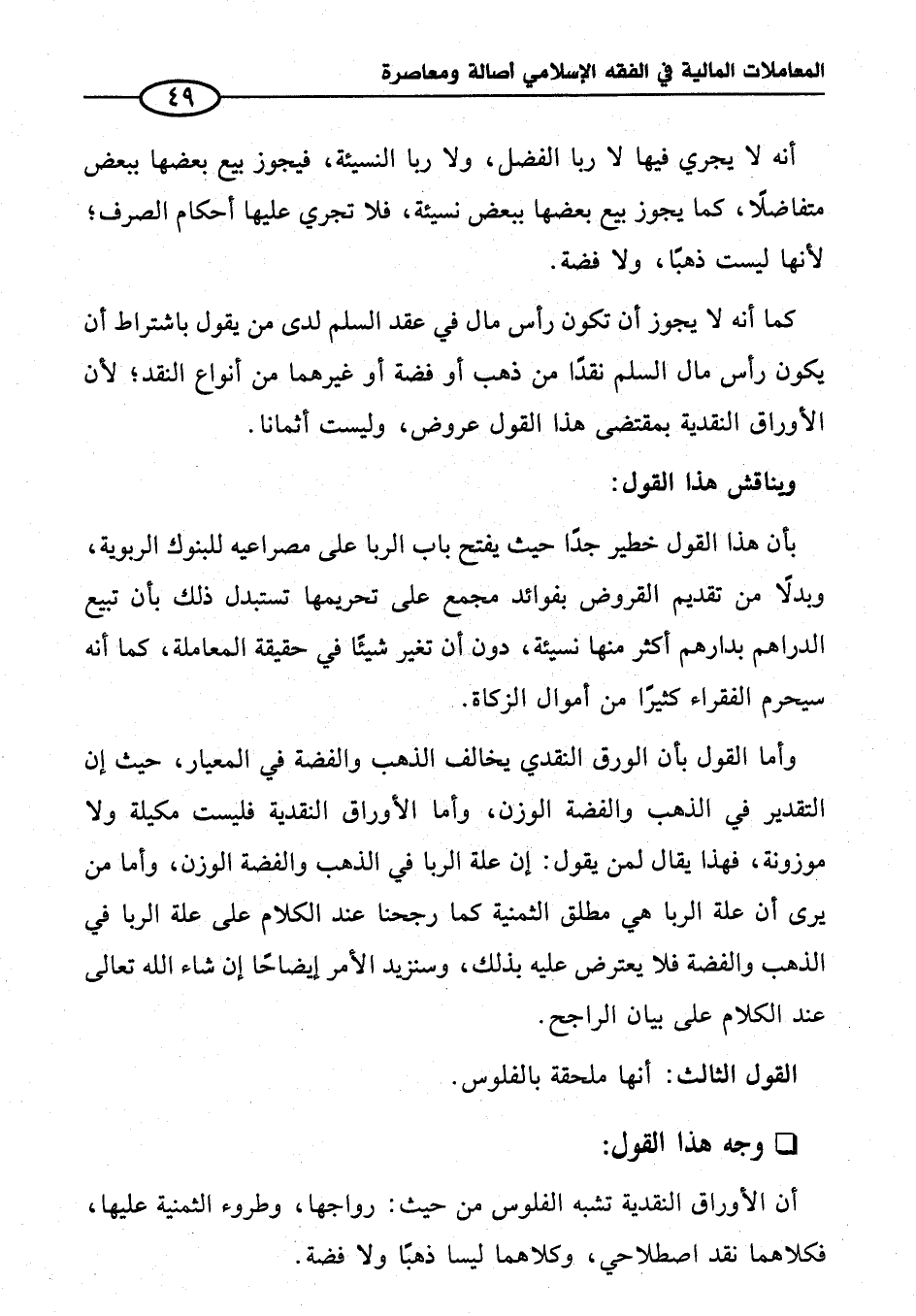 وأما القول بأن الورق النقدي يخالف الذهب والفضة في المعيار، حيث إن التقدير في الذهب والفضة الوزن، وأما الأوراق النقدية فليست مكيلة ولا موزونة، فهذا يقال لمن يقول: إن علة الربا في الذهب والفضة الوزن، وأما من يرى أن علة الربا هي مطلق الثمنية كما رجحنا عند الكلام على علة الربا في الذهب والفضة فلا يعترض عليه بذلك، وسنزيد الأمر إيضاحًا إن شاء الله تعالى عند الكلام على بيان الراجح.