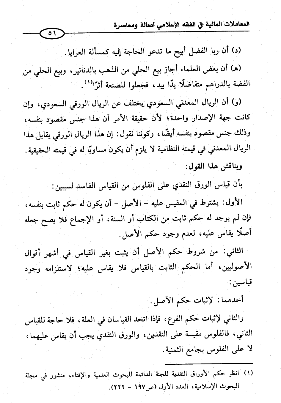 (¬١) انظر حكم الأوراق النقدية للجنة الدائمة للبحوث العلمية والإفتاء، منشور في مجلة البحوث الإِسلامية، العدد الأول (ص ١٩٧ - ٢٢٢).
