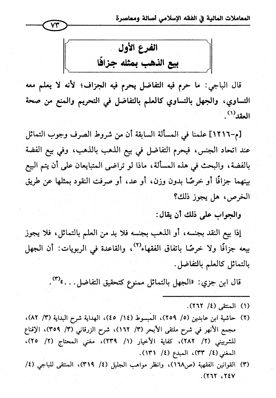 (¬٣) القوانين الفقهية (ص ١٦٨)، وانظر مواهب الجليل (٤/ ٣١٩)، المنتقى للباجي (٤/ ٢٤٧، ٢٦٢).