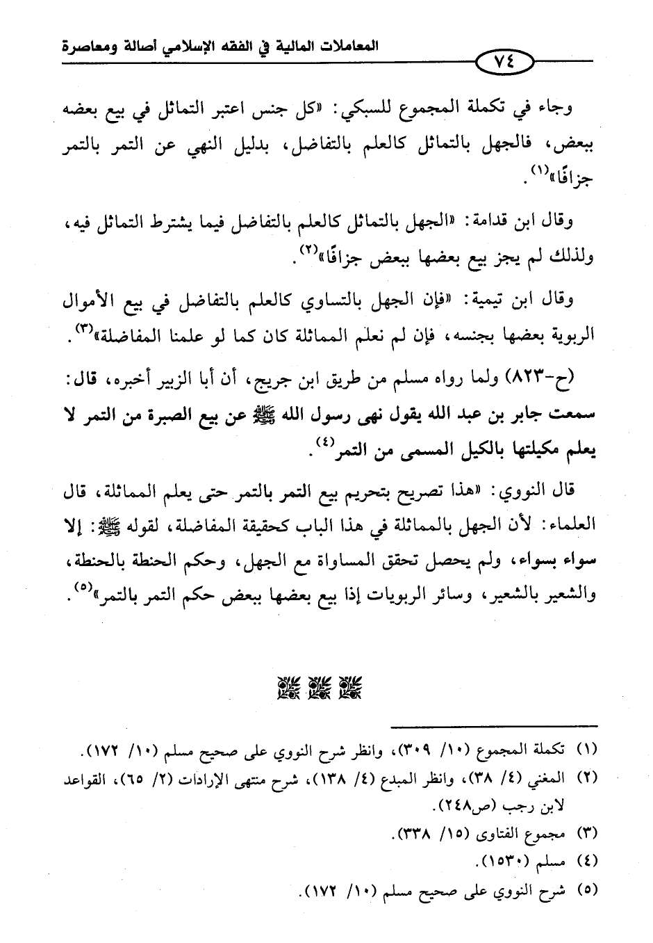 وقال ابن تيمية: "فإن الجهل بالتساوي كالعلم بالتفاضل في بيع الأموال الربوية بعضها بجنسه، فإن لم نعلم المماثلة كان كما لو علمنا المفاضلة" (¬٣).