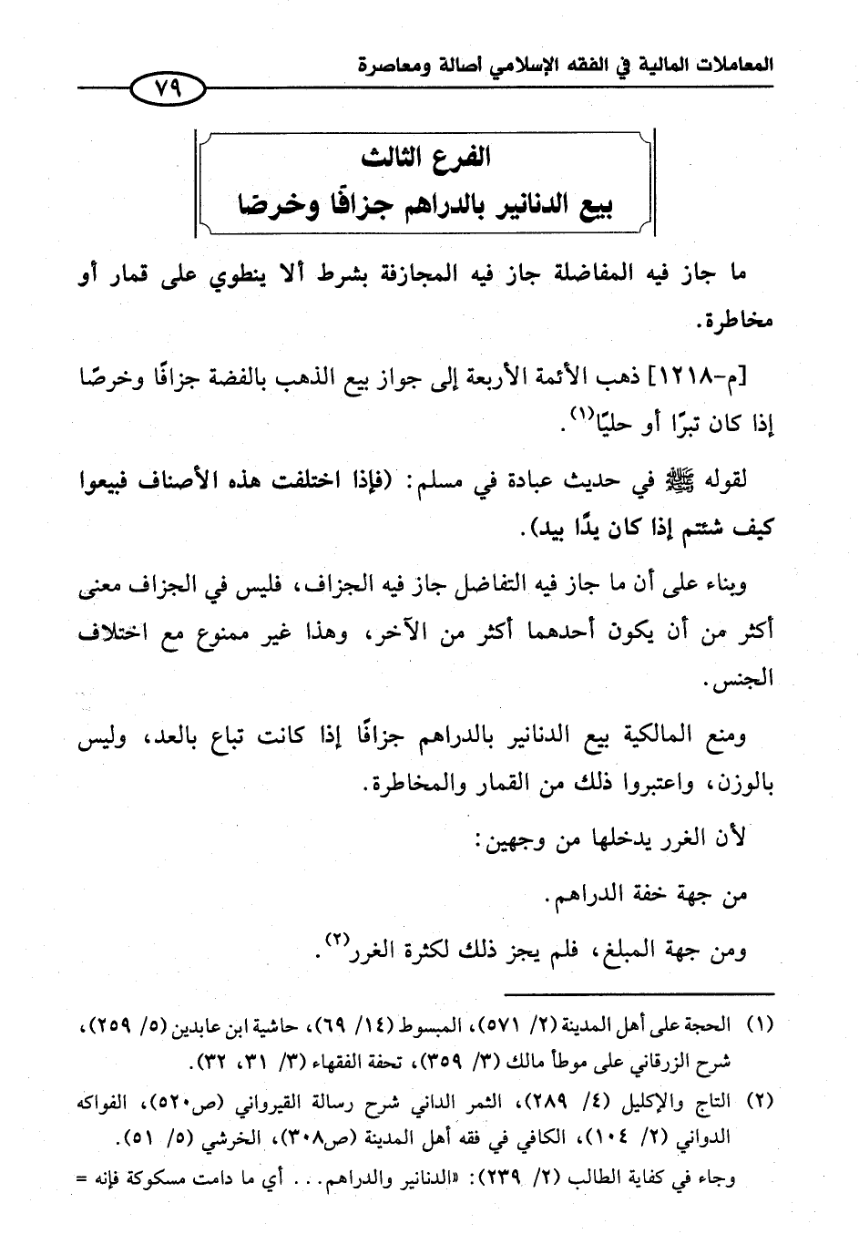 الفرع الثالث بيع الدنانير بالدراهم جزافًا وخرصًا