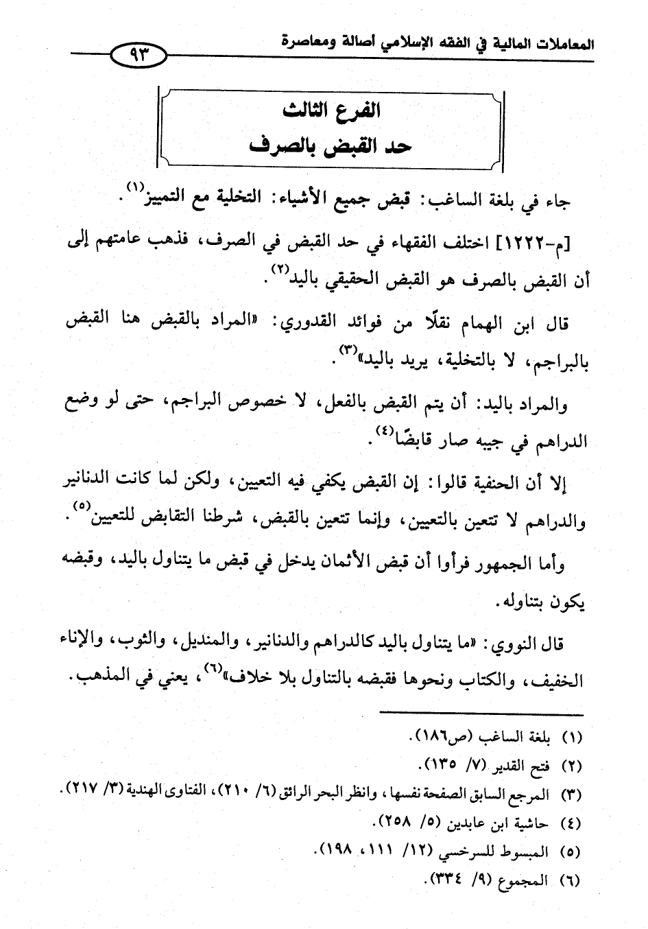 الفرع الثالث حد القبض بالصرف