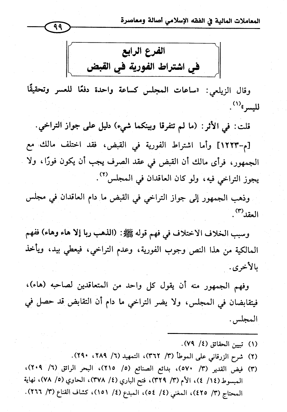 الفرع الرابع في اشتراط الفورية في القبض