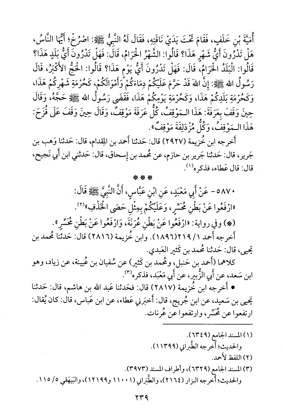 - وفي رواية: «ارفعوا عن بطن عرنة، وارفعوا عن بطن محسر».
